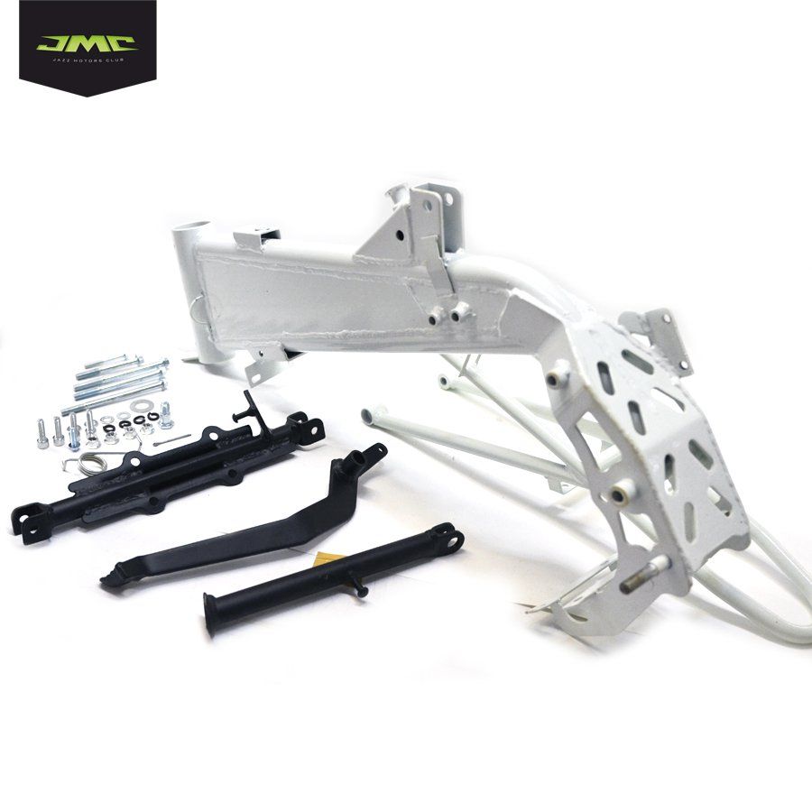 Рама для питбайка JMC 110 S под А образный маятник. В комплекте: рама, бугель, крепления двигателя верхние, кронштейн крепления двигателя нижний (кронштейн подножек). Рама выполнена из Cro-Mo (cromomolibden) - хромомолибденового сплава. Данный тип рамы отличается хорошей прочностью и устойчивостью к нагрузкам в соответствии с небольшим весом.